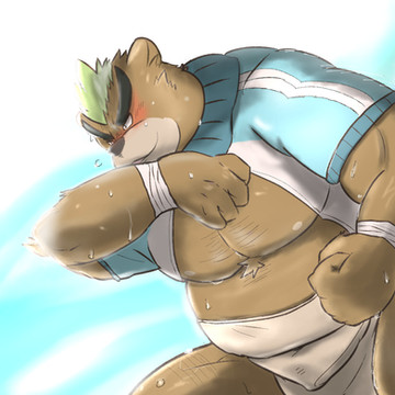 #anthro #dog #fist #fluff #muscles #nosebleed