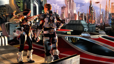 Very good artwork ! I like the depiction and details of decorations like the chinese ans english writing next the young girl, the reflection of the street on the windows of the futurist plane.