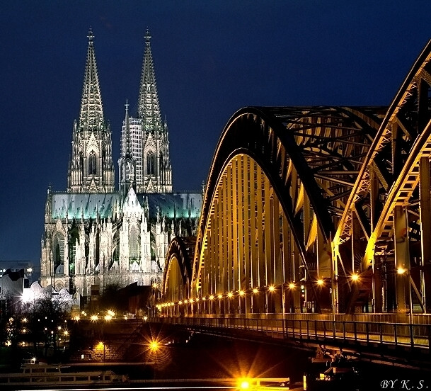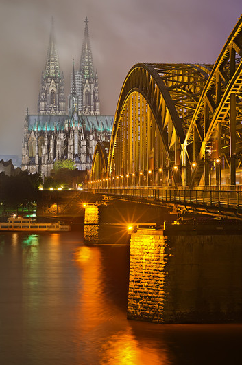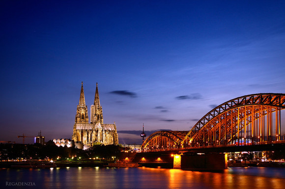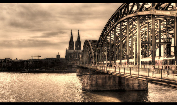 The Dom and the Hohenzollern Bridge from across the Rhine.Cologne/KΓΆln, Germany.