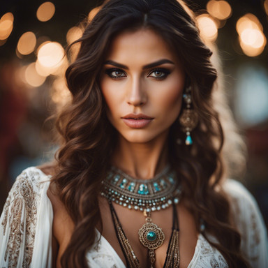 #portrait #beauty #jewelry #digitalart #glamour #adornments #bejeweled #bohemian #boho #brownhair #earrings #earthy #gems #hippie #jewels #natural #necklace #wheatfield #woman
