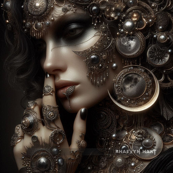 #digitalart #portrait #beauty #fantasyart #surreal #characterdesign #jewelry #black #darkmoon #digitalpainting #gems #gold #goldeyes #jewels #moon