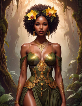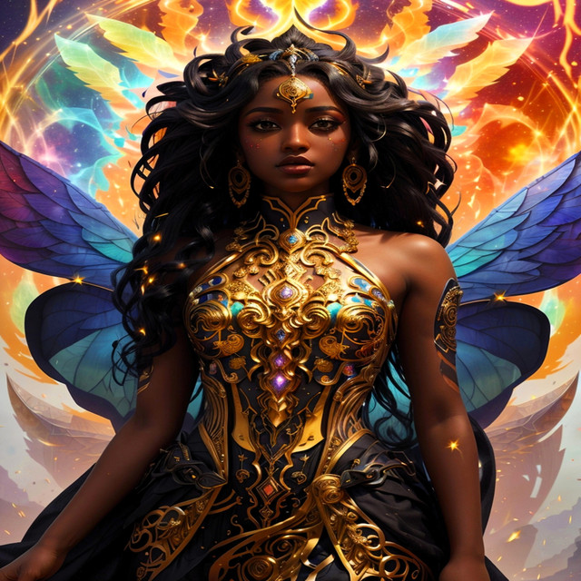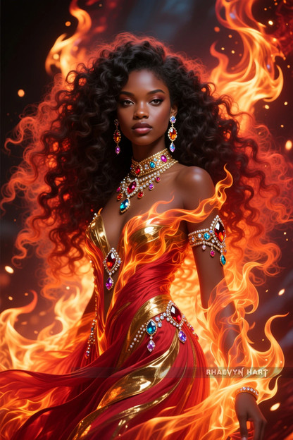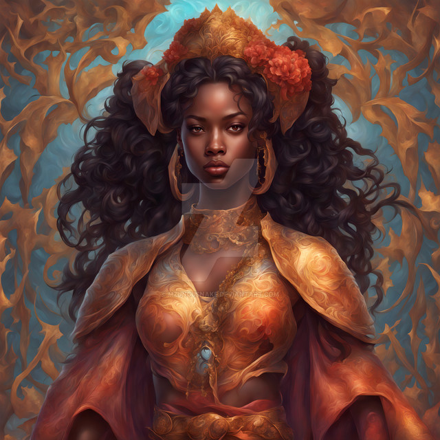 #digitalart #characterdesign #beauty #fantasyart #fantasycharacter #drama #princess #magic #glamour #dress #africanamerican #bighair #couture #firesign #orange #sparkle #fire