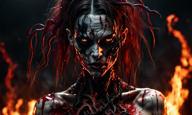 #digitalart #characterdesign #beauty #magic #horror #portrait #drama #creepy #anger #fantasyart #gothic #heartless #rage #scream #woman #fire