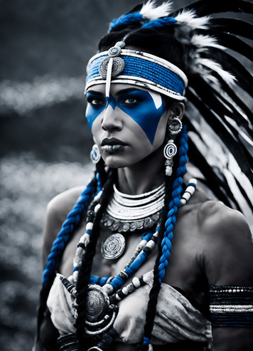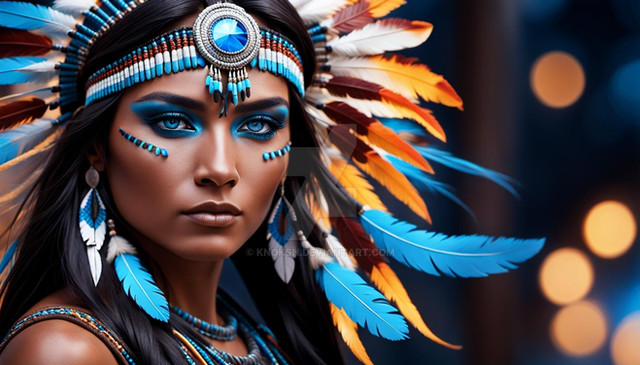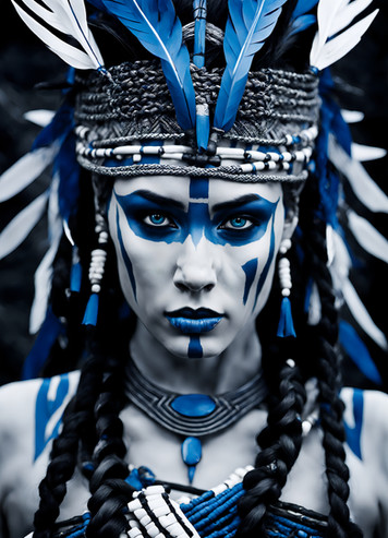 #digitalart #portrait #beauty #warrior #fantasyart #makeup #blue #costume #feathers #forest #headdress #nativeamerican #warpaint #waterfall #white #woman #warbonnet