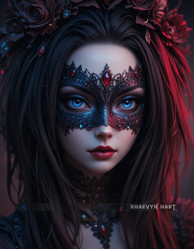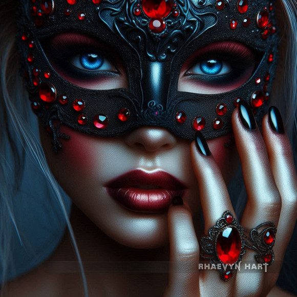 #portrait #beauty #digitalart #drama #photography #makeup #glamour #gothic #bejeweled #blueeyes #costume #face #gems #mask #masquerade #red #ruby #woman