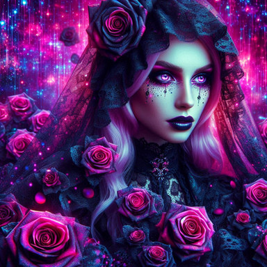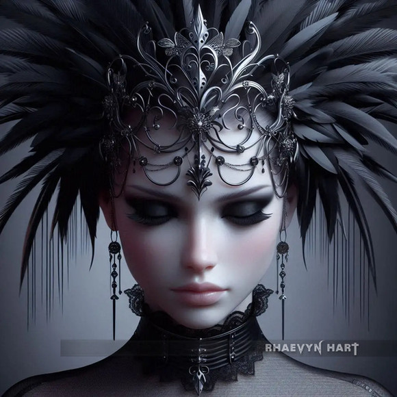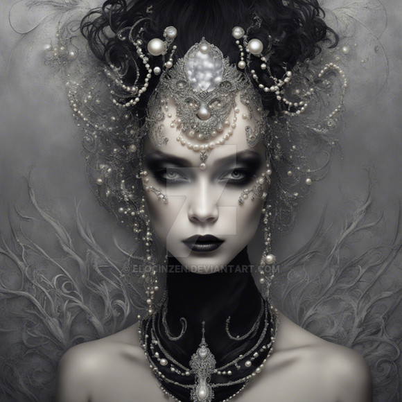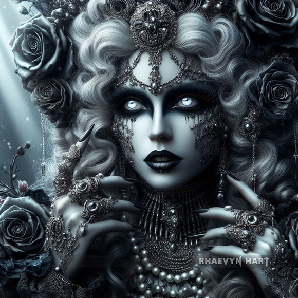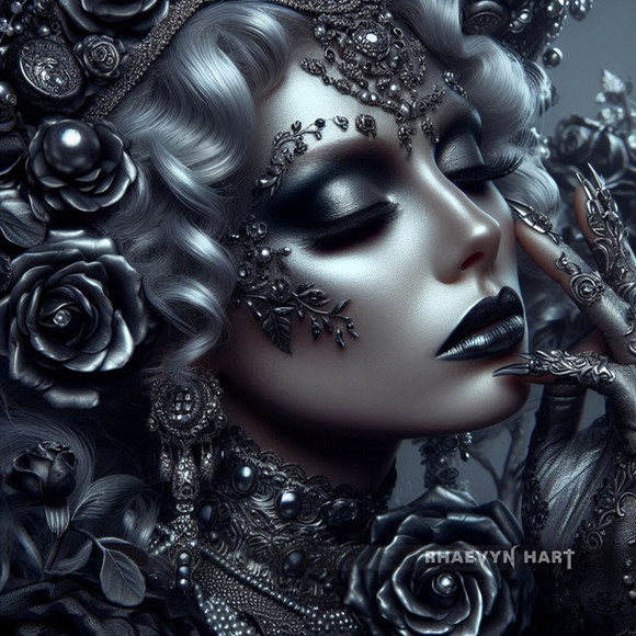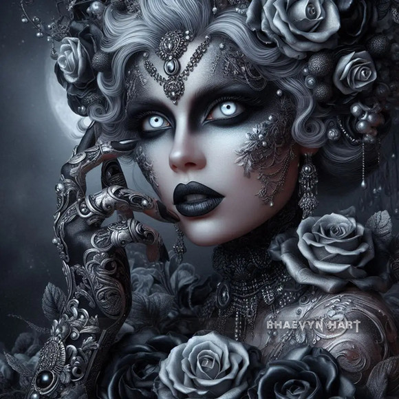 #digitalart #portrait #beauty #gothic #deviantart #fantasyart #makeup #characterdesign #blacklipstick #evocative #face #flowers #jewelry #moon #reverie #roses #silver #woman