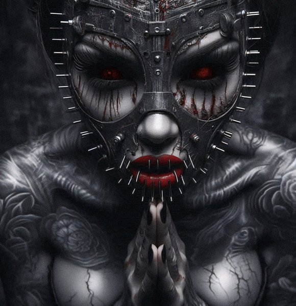 #digitalart #characterdesign #portrait #beauty #horror #gothic #skull #photography #creepy #black #breathingmask #leather #mask #red #roses #spikes