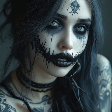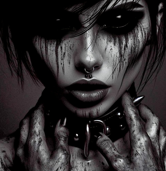 #digitalart #characterdesign #portrait #gothic #creepy #tattoo #makeup #black #blackandwhite #choker #cyberpunk #lipstick #metal #pale #photorealistic #piercings #steel