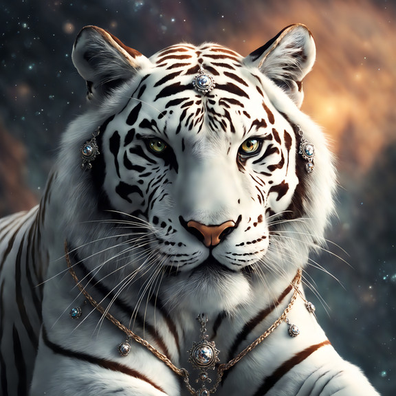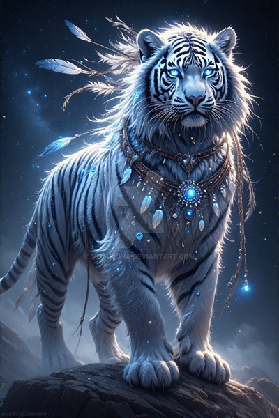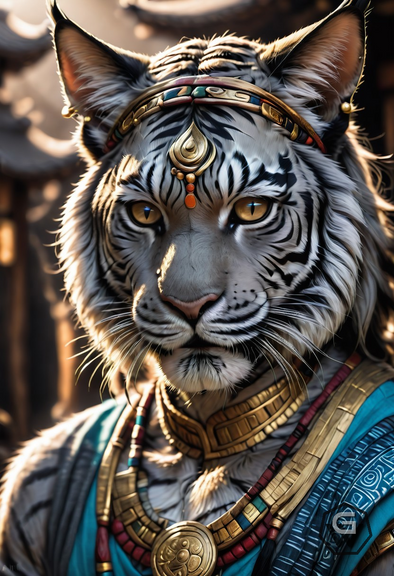 #digitalart #characterdesign #fantasyart #tiger #portrait #conceptart #animal #magic #bigcats #blueeyes #crown #jewelry #majestic #shaman #whitetiger #wildlife