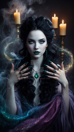 #digitalart #portrait #magic #gothic #fantasyart #drama #witch #beauty #atmospheric #black #candles #fog #mysterious #mystical #woman