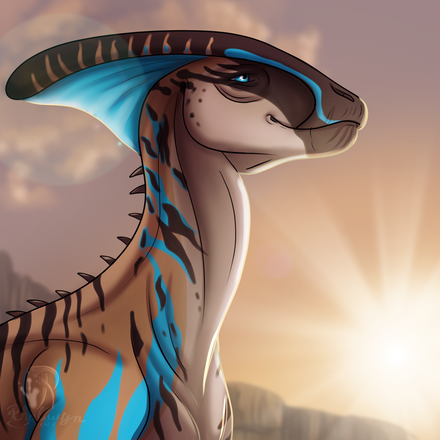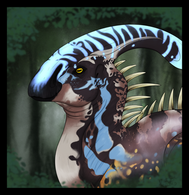 I made this commission for a friend, it shows her Part of Thitan's Parasarolophus and character. Charakter Page: toyhou.se/22778265.sol~~