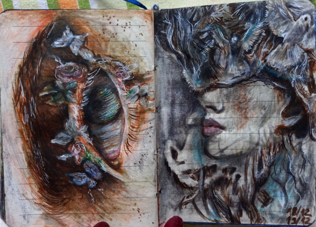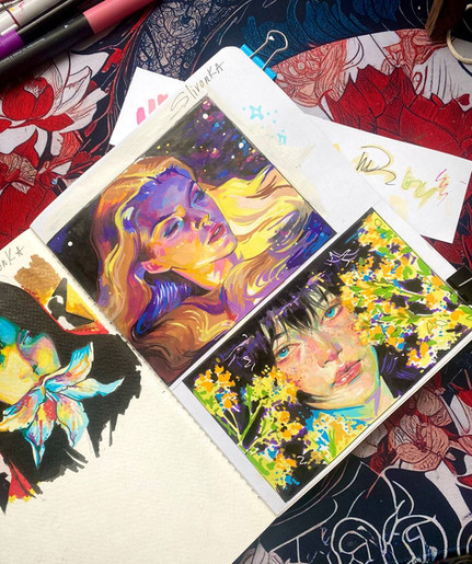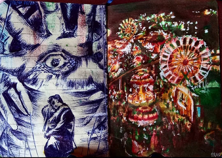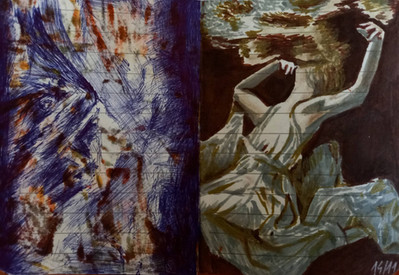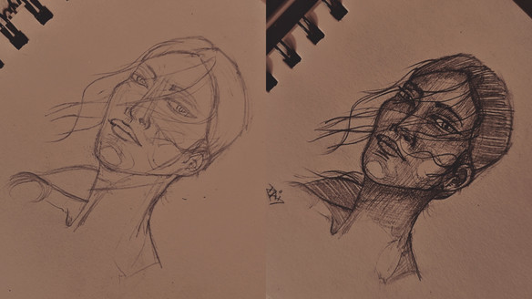 two small drawings from 16/12/2019 and 17/12/2019 done with markers in my sketchbookunfortunately i don't know the original artists whose work i used as a reference, i want to give them credit nonetheless...