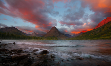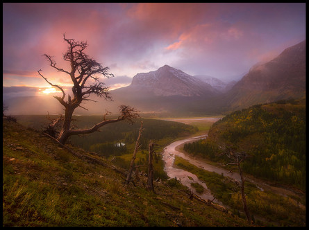 I fell in love with this shot once I saw it. The beautiful skies, the amazing mountains and forest in the backdrop, the cliff overlooking the lovely lake in the valley was just overwhelmingly wonderful, and the two trees looked a lot like two people conversing with each other. Excellent shot~