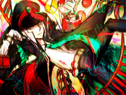 Anyway, the absolute relaxation of the pose is great. It echoes the flag wonderfully, and is such a sinister attitude considering all of the horror he has balanced so lightly on his back. The colors only enhance the delicious horror of the picture. Their stark and bloody contrast makes me happy. So marvelous.