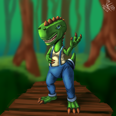This is an absolutely amazing painting! I love the pose you chose for him and all of the really fantastic lighting and shading! All of the details are just unbelievably good! The scales, stitches on his backpack, reflections, it's just an amazing piece all around! The background is so beautifully done and fits the warm colouring so well! Thank you so much for doing this, it was a pleasure working with you and the result is completely worth the time and money!