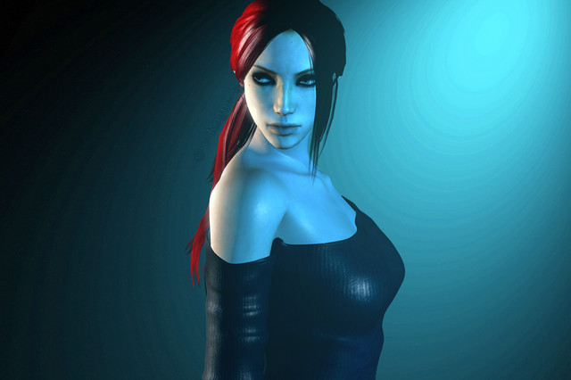 What'd have happened had Neeshka succumbed to Garius' temptation at the end of NWN2? I am thinking something like this...a fallen tiefling.My husband thinks she'd have had much better fashion sense, for starters-- since dontcha know, Evil always wins the fashion contest in any story...