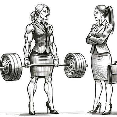 “Wow, Jill!” Tara exclaimed as her boyfriend looked on, his face seemingly unable to decide if it should looked worried or confident. Maybe it was just that her attire created optical illusions to bring out all the right qualities, but Jill seemed more muscular than when he last ran into her a few days ago. In fact, it was totally unmistakable now: she was buff. As she walked up to Tara, Linton noticed how much broader Jill shoulders were compared to his girlfriend’s. Her abs were also bold and visible in spite of the dimly lit sidewalk they stood on. And Jesus her arms and shoulders were fucking toned. It didn’t make sense. She must have been on the juice. There’s just no way.