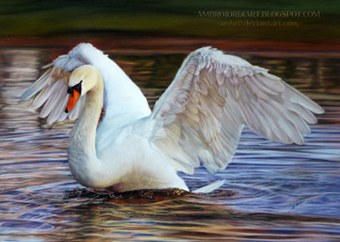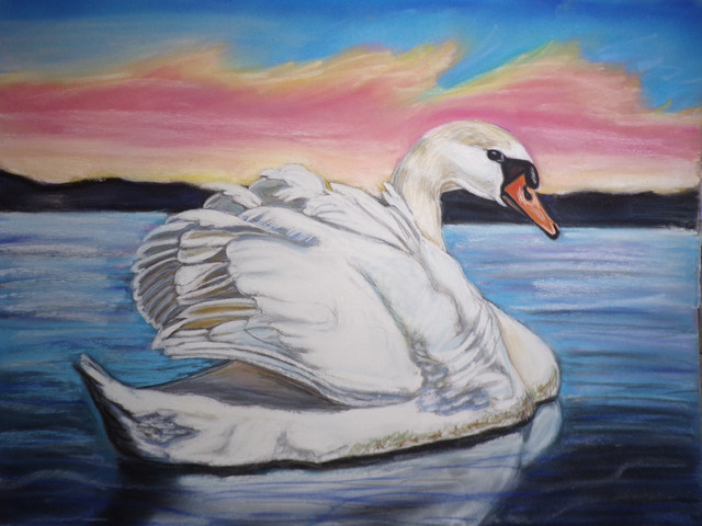 i know, i thought that too, but swans aren't really fluffly, at least this one wasnt, it was all smooth, and i couldn't get much more texture in without it looking wrong. oh well, i shall just have to trust that most peopl can identify a swan when they see one, and know that it has feathers
