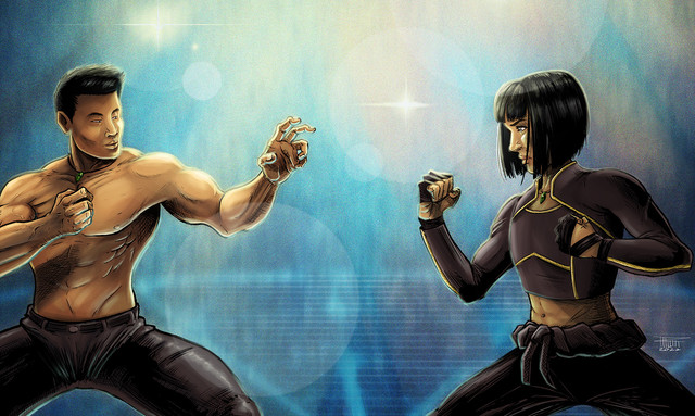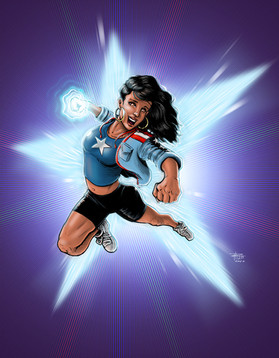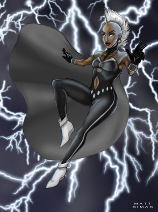 With the 80's costume and her powers I could have call this piece "Rock you like a hurricane", but it does seem familiar (shoutout Scorpions!)I wanted to have those heavy and thick clouds in the background to create this feeling of tension and power. Like the sky is about to crash on her opponent's head! Yeah, brutal!