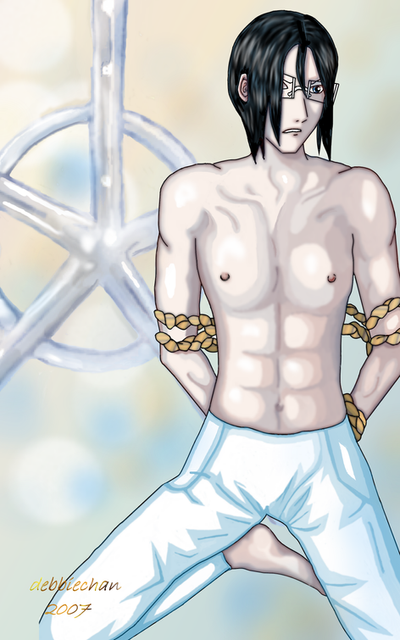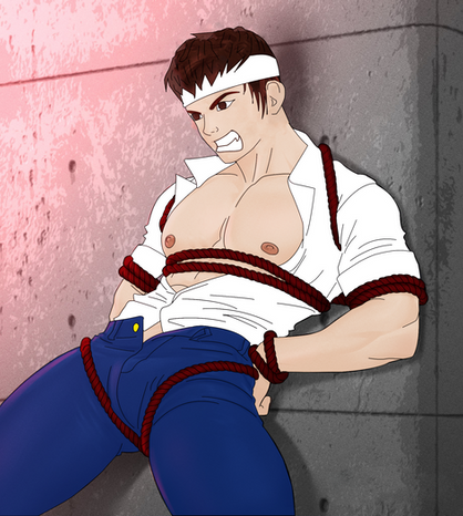 +_+ Damn the glasses people really ARE sexay without them *__* Your shading is good, but maybe a little too subtle? *really just wants to tell you that there should be red bondage marks from the ropes *NOSEBLEED** Really good collab work