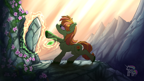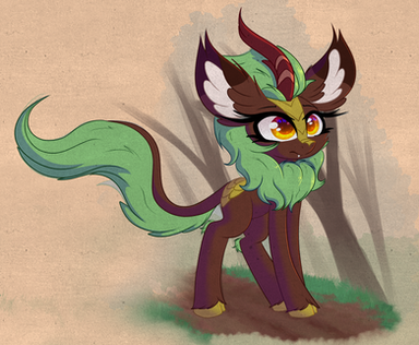 My green horse, Rhythm Fruit, as a deer. Or doe.Just wanted to see her as a deer, then the background just sorta came to be. Dunno about it but I had plenty of fun with this.