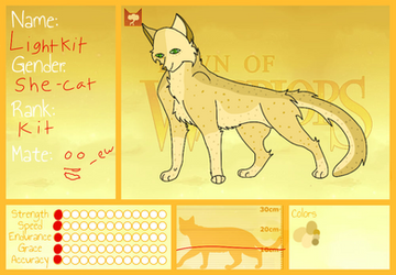 Swiftkit looks up to her parents for their tales of being warriors and her older siblings for guidance. She loves to hear the tales of her own parent’s races, making her own paws tingle excitedly. The young kit vows to be the best warrior she can ever be for them.
