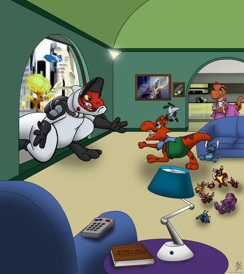 Stich: Hurry up, Gantu! The director is having kitties with the delay!