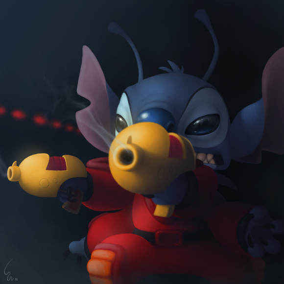 No, very rarely do i use screen-caps for reference. Only when i get stuck on a difficult pose. Stitch is much easier to draw in his suit.