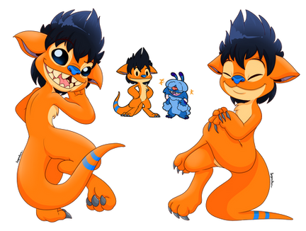 He reminds me of a kangaroo. Such a neat/cute design! Nice work. Is he your self character or like a mascot? I notice you use him a lot around your page.