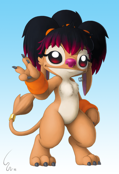 Stef. This girl right here, is my ideal fashion sense XD also, wondering what kind of animal is she? Also, I love the hair pin and tongue thing