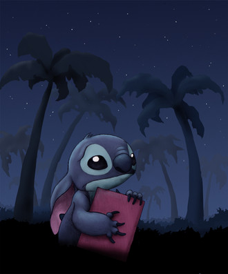 The feeling of emptiness really rings clear throughout this piece. the blank background really draws the attention to Stitch. Great work! You draw stitch so well!