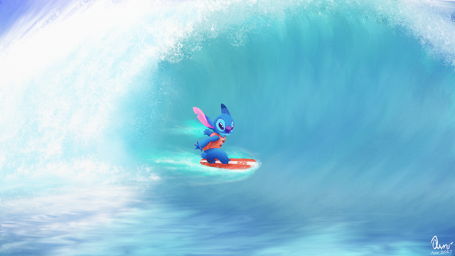 Summer is finaly here. At least in Sweden. Curse those late summers. I decided to make a summer wallpaper.So here is Stitch in his new ride!