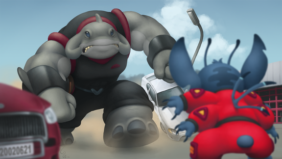 Well, there goes the neighbourhood... *watches as Stitch destroys city* Awesome pic as always...