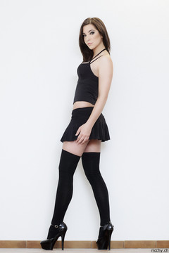 Possibly one of the finest shots I've ever seen. What she's wearing. The placement of every aspect of her. If she were a statue you would want to examine her in detail up close. Never touching her; but wanting to. The hand and how the fingers curve. How the hair isn't perfectly combed; as if she had just finished a deep in thought dance. And the tattoos on the back legs, intriguing. Model selection - excellent. Choreograph of model - excellent. Outfit - excellent. Color - excellent. Congratulations to you both.