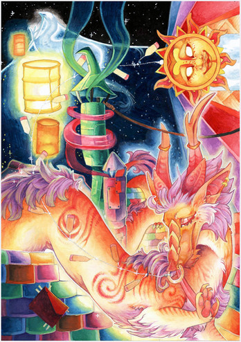 bristol board/watercolour/colour pencil/white+yellow gouache/white gel-pen/2H+HB pencil