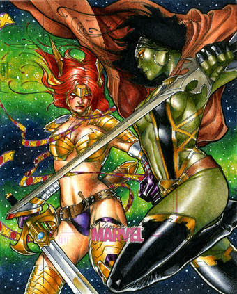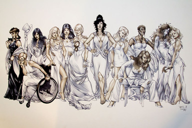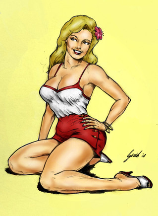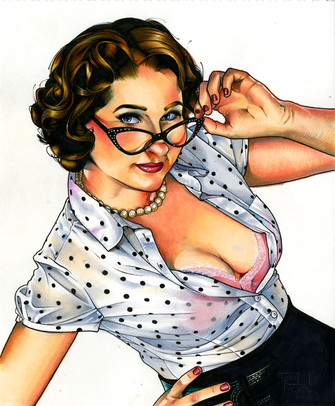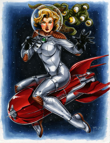 "Welcome Home"This is one of two base cards I completed for Bad Axe Studios' Bombshells: Women of War trading card set. Its COPIC markers, COPIC sepia & black multiliners, acrylic paint, colored pencils, and white ink on 9x12 off-white medium strathmore drawing paper.