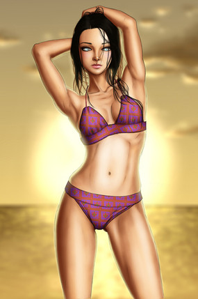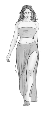 Anyway, I feel you do a great job conveying her personality here. I've always seen her (and may have mentioned this elsewhere) as a woman who's confident in her appearance, and the sway of her hips really helps convey that. I also like how her hair is blowing backwards and the way the dress is moving around her leg.