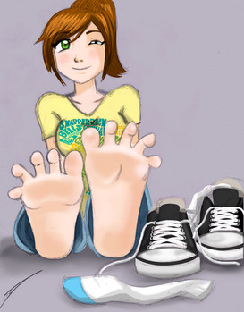 Freckly nerd with glasses and pretty feet! She is a big time cutie! What is her name?