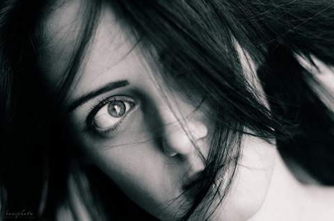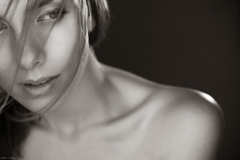 I love the tone you picked. It gives the picture a slightly vintage feel while the fine detail of her hair adds the vibe of an artistic pencil drawing. I find it interesting and fun to see creative photographs like this that break beyond the realm of film and venture into other art forms. Bravo.