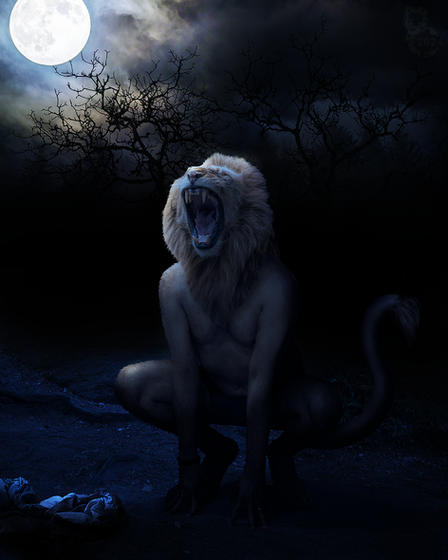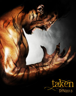 Given the muted colors around him the tigerman seems to fairly explode out of the scene right at you! Much like a tiger launching itself from concealment.