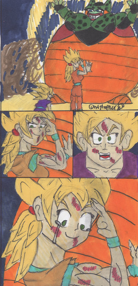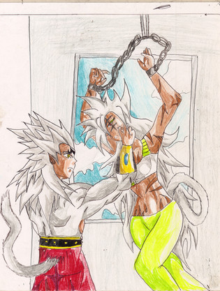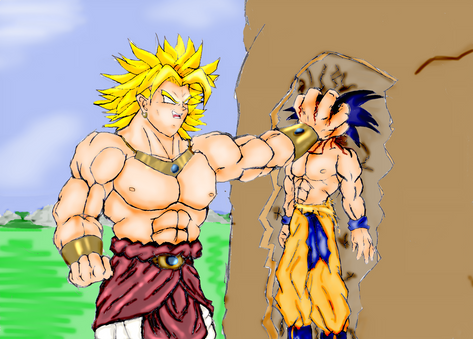 Broly and Goku are fighting a common foe. He chains up Broly and fights goku! The villain stabs goku in the stomach, Goku starts to bleed to death! Broly, who sees the scene, transforms back into a super saiyan and Yells out, crying "Goku, PLZ DON'T DIE, I LOVE U!" And breaks outta her chains! Goku loses consciousness and now Broly must defend her beloved Goku, who she's viewed as n enemy. Could it be all this time that Goku crying asa ababy wasn't what drove Broly insane, but the pressure to grab Goku's attention did? WE''ll never find out! Now Broly must fight this invincible foe, alone! Will her saiyan pwers be enough to defeat thismenace? Find out on the next episode of dragon ball z?Related content