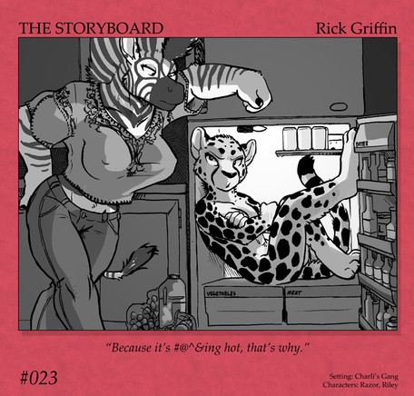 Yeah. If you're thinking that Riley (the cheetah) is a guy, it's because her boobs are hidden by Razor's arms.