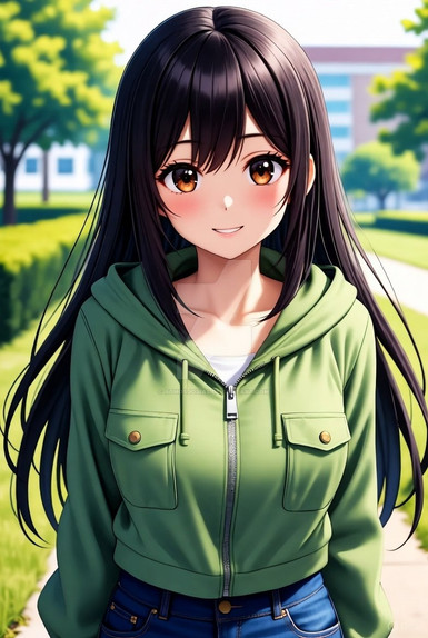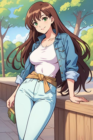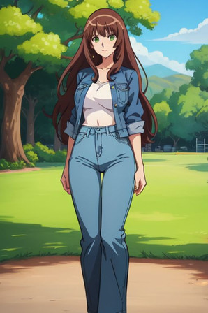 #alternate #beautiful #beautifulwoman #brunette #denimjacket #greeneyes #jeans #longhair #park #radiant #smiling #brunettebeauty #longhairedwoman