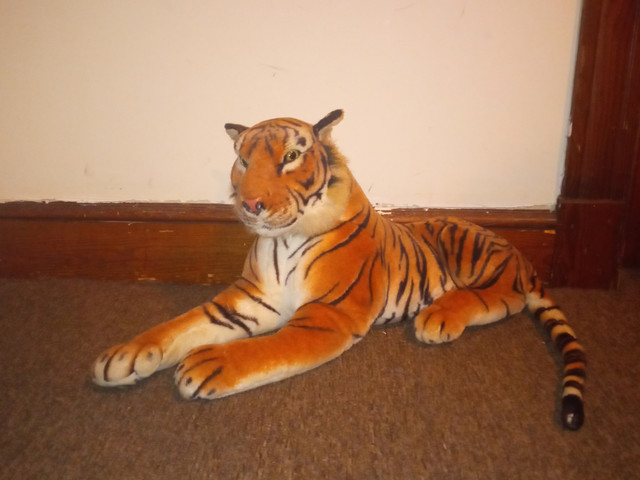 I have a tiger plush that looks about her size! His name is Tiggy! (i was 6 when i named him)