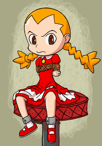 Doremi Harukaze form Ojamajo DoremiMysterious witch captures her and tied her up tightly to the chair, and cast a spell to secure her even more.