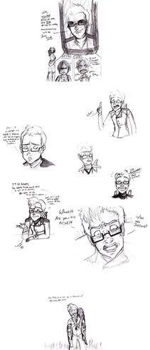 I love the Doctor so much.While they were down I was able to introduce my friends and to the show. While we were watching it (I think that night it was Planet of the Ood) I drew my first real Dr. Who fan art. A bit cartoony, but not bad for my first (non chibi) try. :3