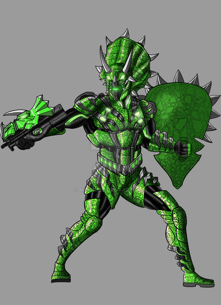 However, he is physically Stronger than both those rangers combined, his Unbreakable perfect Defence is unmatched and the Spikes on his armor can extend to harm whatever is threatening him while protecting him at the same time