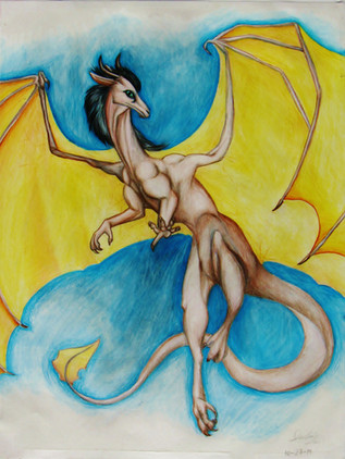 A picture of 's character for her contest. She is a gold and silver dragoness. But I haven't got the golden coloured dry pastel so it looks rather yellow. I hope you don't mind Verra.Related content