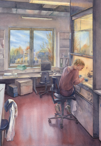 #painting #scientist #interior #laboratory #watercolor