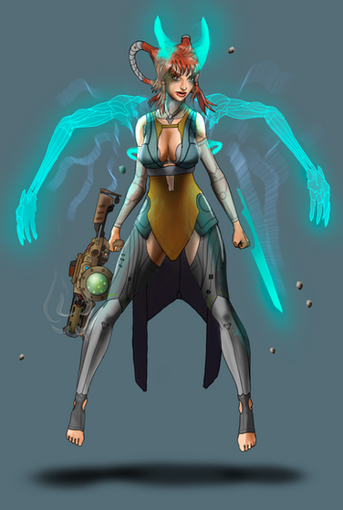 I like you interest in this one I've kinda used concept of plasma guns from film Terminator. There is liquid medium vaporized and by its own expanding its splashed out trough nozzle. Some small nuclear reaction could be used as energy source. Inside the collar, where are small cells (in V2 you can see them) is "plazma-trap" that can hold hot plazma for some time, so process of firing looks like: 1. heating liquid, turning it into plasma (0,3s); 2.a firing it; 2.b or you can safe hot plazma for about 1 minute to shoot later; 3. cooling by turning collar a bit (0,2-1s). Nozzle is adjustable, so you can switch it into rifle or shotgun style. You can imagine that hot plazma in form of moving cloud could be really devastating. Liquid medium could be some reactive kind for explosive effect, or with high viscosity for huge impact, or full of neurotoxin, or filled with nanobots. I design this weapon for postapocaliptic era for elite, so there are no magazines, mechanical parts are minimized, and there is just tank for liquids, and fuel cells as source of energy. You could shoot even water from it and it would be devastating. There is one tiny handicap - I'm not sure how radioactive it would get after some time.
